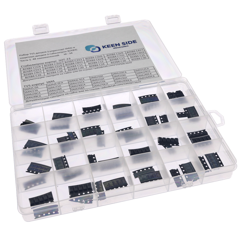 доп. изображение Набор TVS диодов (супрессор) SMAJ и защитных диодов (стабилитрон BZX84). Часть 1. 48 наименований.-1