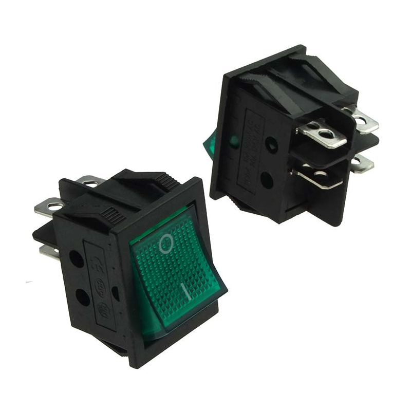 Клавишный переключатель KCD4-201N-C3-G/4P on-off / зелёный c подсветкой 250VAC, 15А,