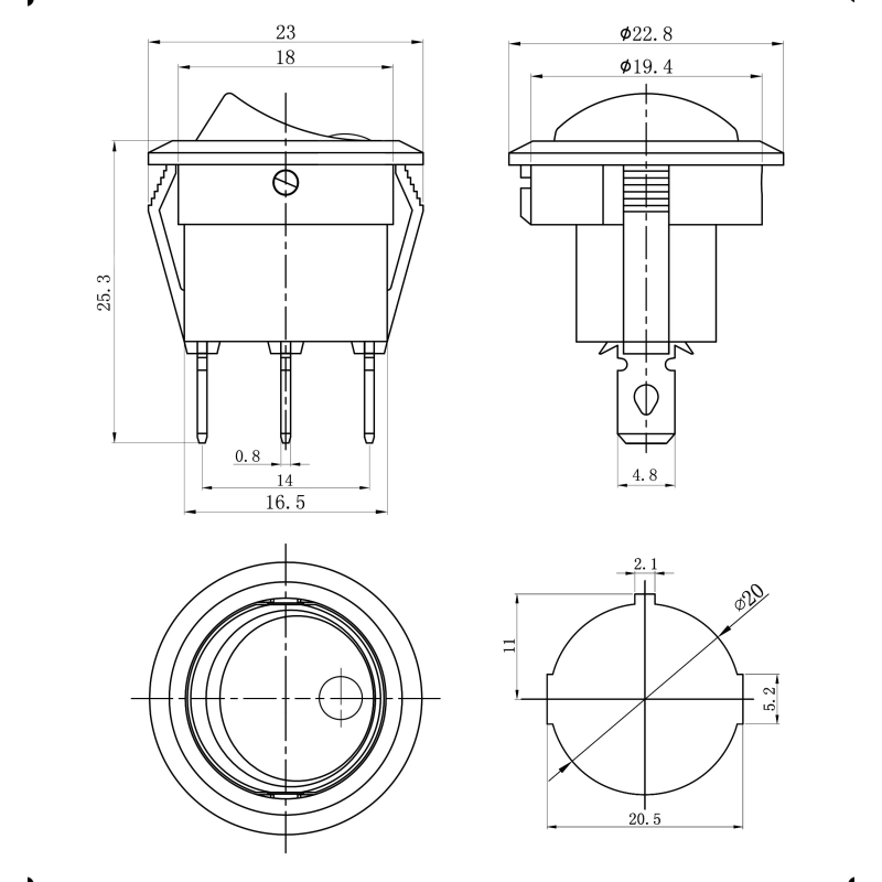 Клавишный переключатель KCD1-101EN-8-R/3P on-off
