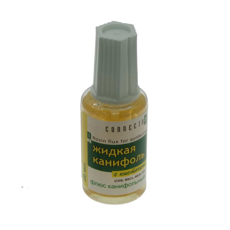 Вес:объем-25 мл;Наименование:Флюс Жидкая Канифоль;Состав:2-пропанол, канифоль, гидроксид пентагидродикарбония, смачивающие присадки;Цвет:прозрачная жидкость желтого (коричневого) цвета;Назначение:для пайки печатных плат и радиокомпонентов;Аналог:СКФ, ФКСп, ФКЭт, КЭ, Канифольный флюс;Дополнительно:промывается спиртом или ацетоном;Упаковка:пластиковый флакон с крышкой и кисточкой;Температура пайки:180…350 °С