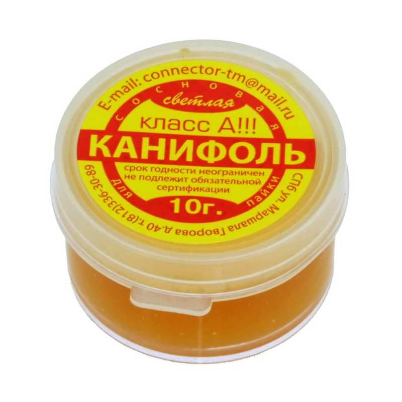 Вес:10 г;Наименование:Флюс нейтральный-канифоль, класс А;Цвет:светло-желтая;Назначение:для пайки радиокомпонентов печатных плат;Дополнительно:промывается спиртом или ацетоном;Упаковка:пластиковая банка с крышкой;Температура пайки:180…350 °С