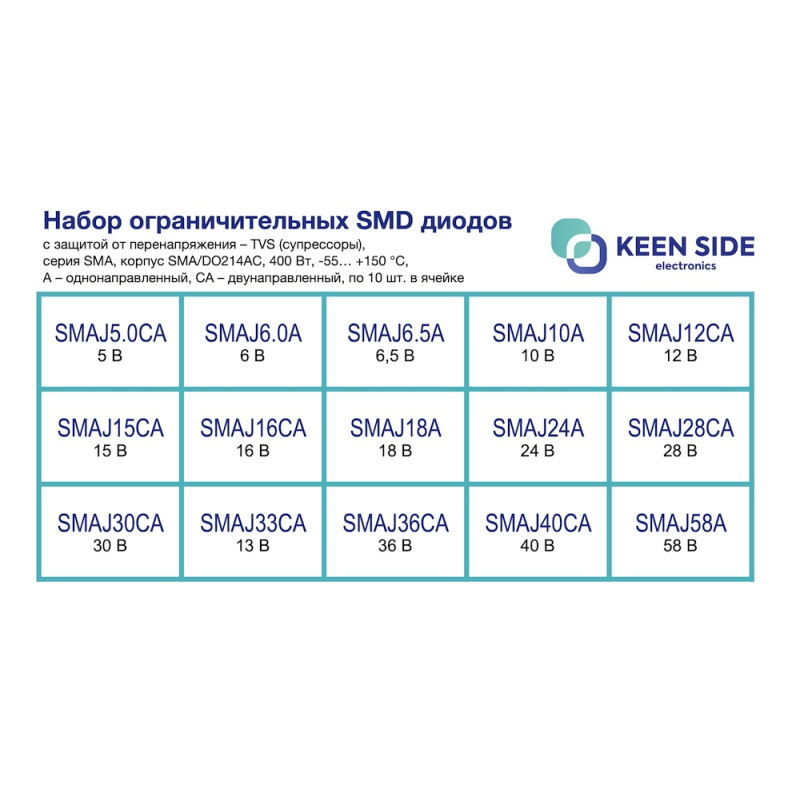 доп. изображение Набор ограничительных smd диодов, защитный от перенапряжения - TVS (супрессор), серия SMAJ-2