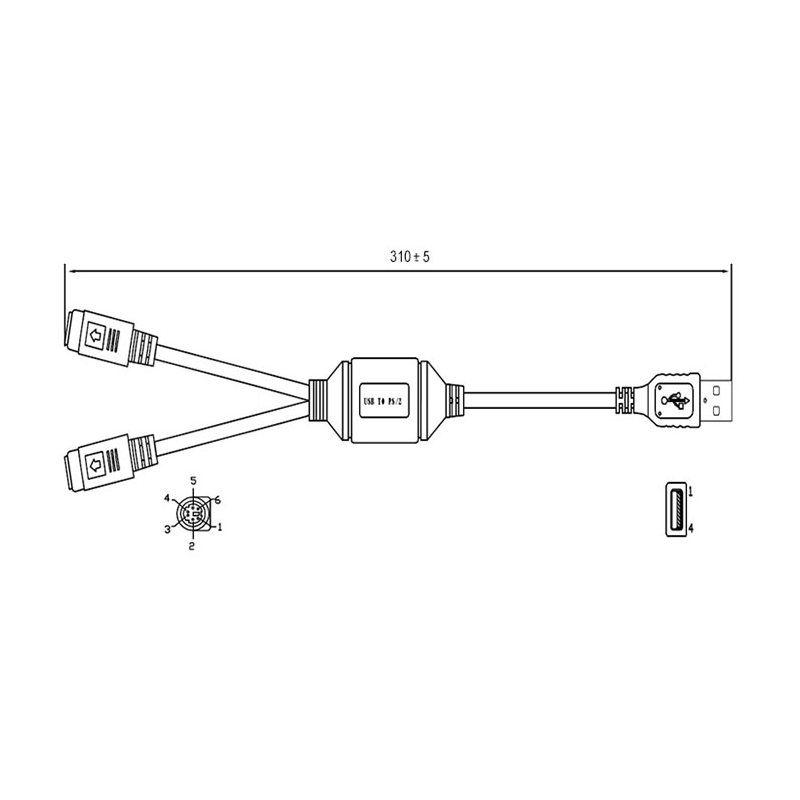 | Тип | шнур переходный - разветвитель USB-A (M) - 2 x PS/2 MINI Din 6 pin (F) |